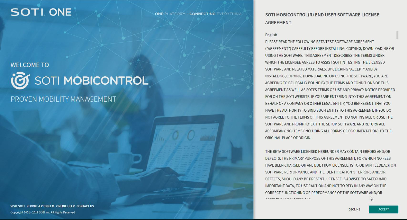 Accept the SOTI MobiControl End User Software License Agreement.
