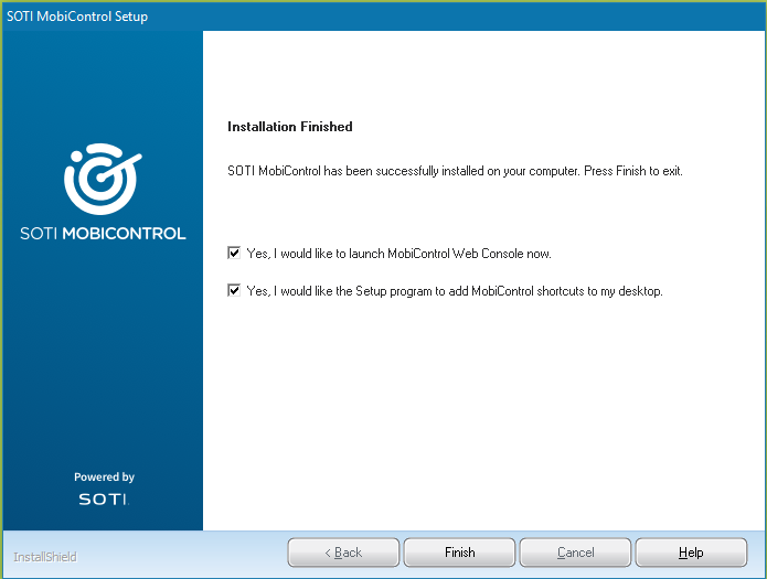 Done! You have successfully installed SOTI MobiControl and launched the SOTI MobiControl console. You are now ready to start managing your mobile devices.