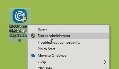 Run the SOTI MobiControl installer as an administrator to launch the installation wizard.